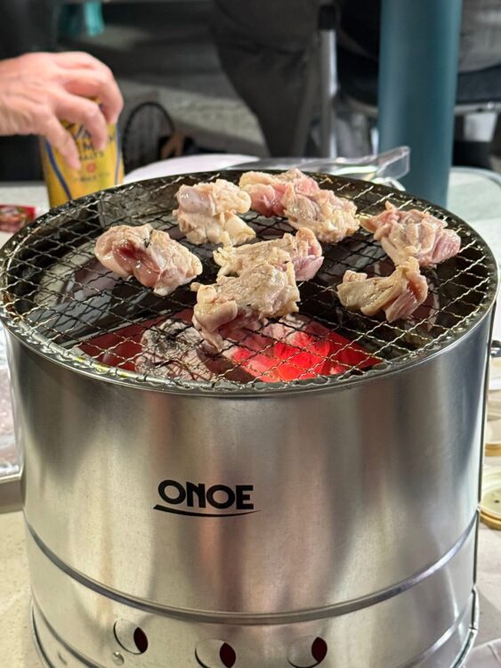 私がしゃべっている間、セイイチさんは炭を熾してまわっていました。