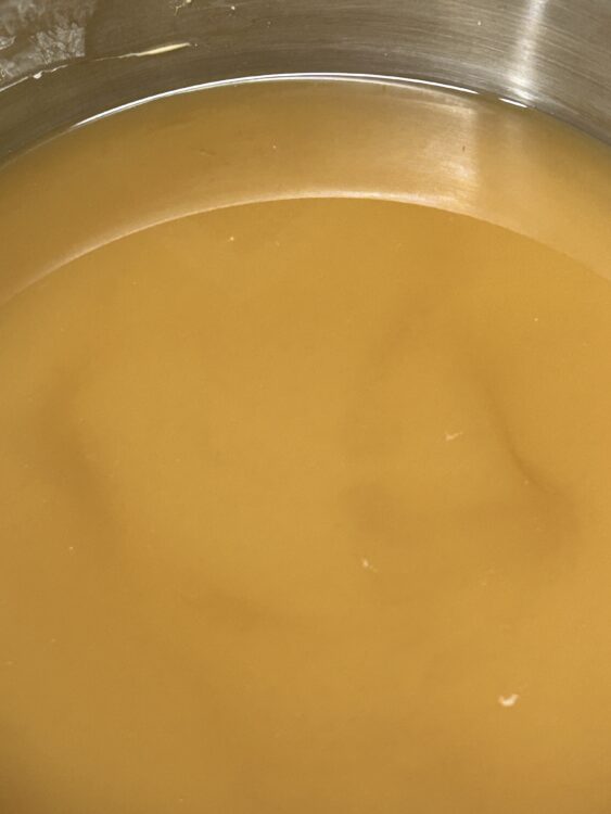 しばらくさらして、凝固したデンプンを熱して仕上げ。