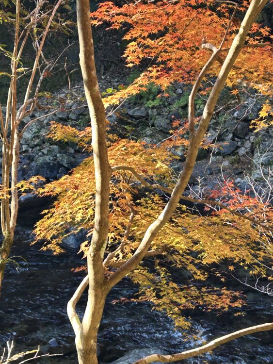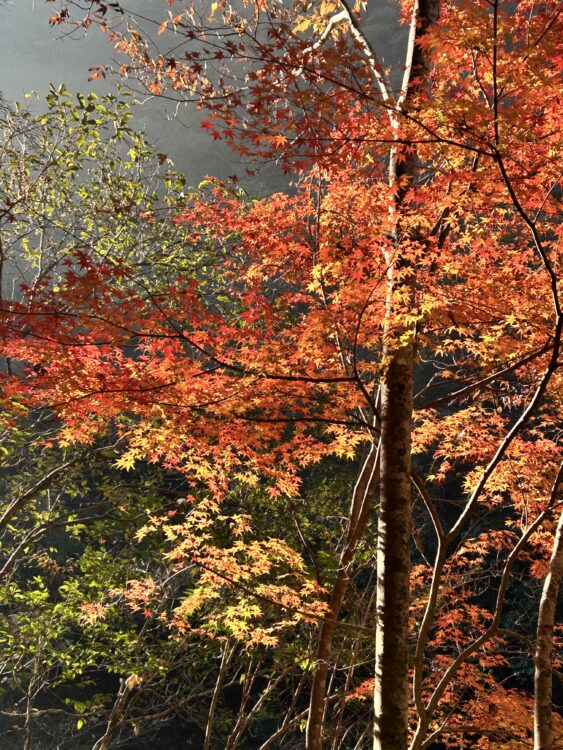 お日様が、緑の中をカーテンのように降り注いでいました。