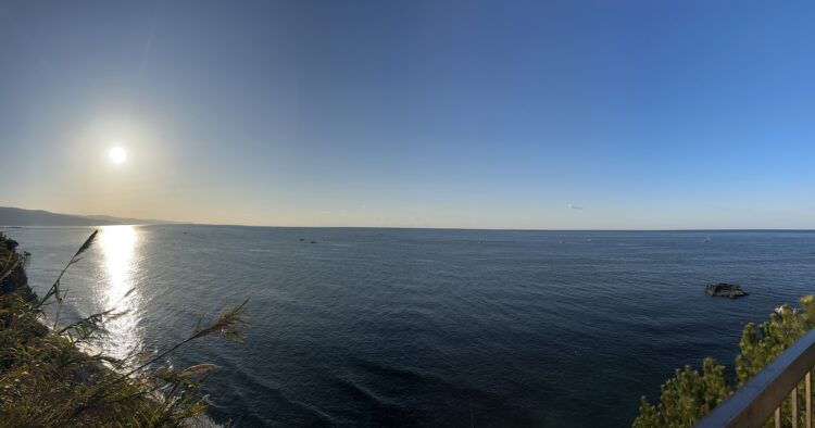 朝、太平洋に出漁している漁船を眺めて