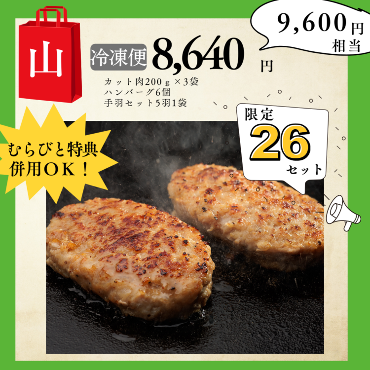 山セットは、カット肉とハンバーグ、手羽の詰め合わせです。