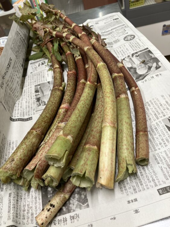 畑山はまだまだですが先日、宇和島に土佐ジローのご飯を取りに出かけたセイイチさん早速、イタドリも収穫してもって帰りました。